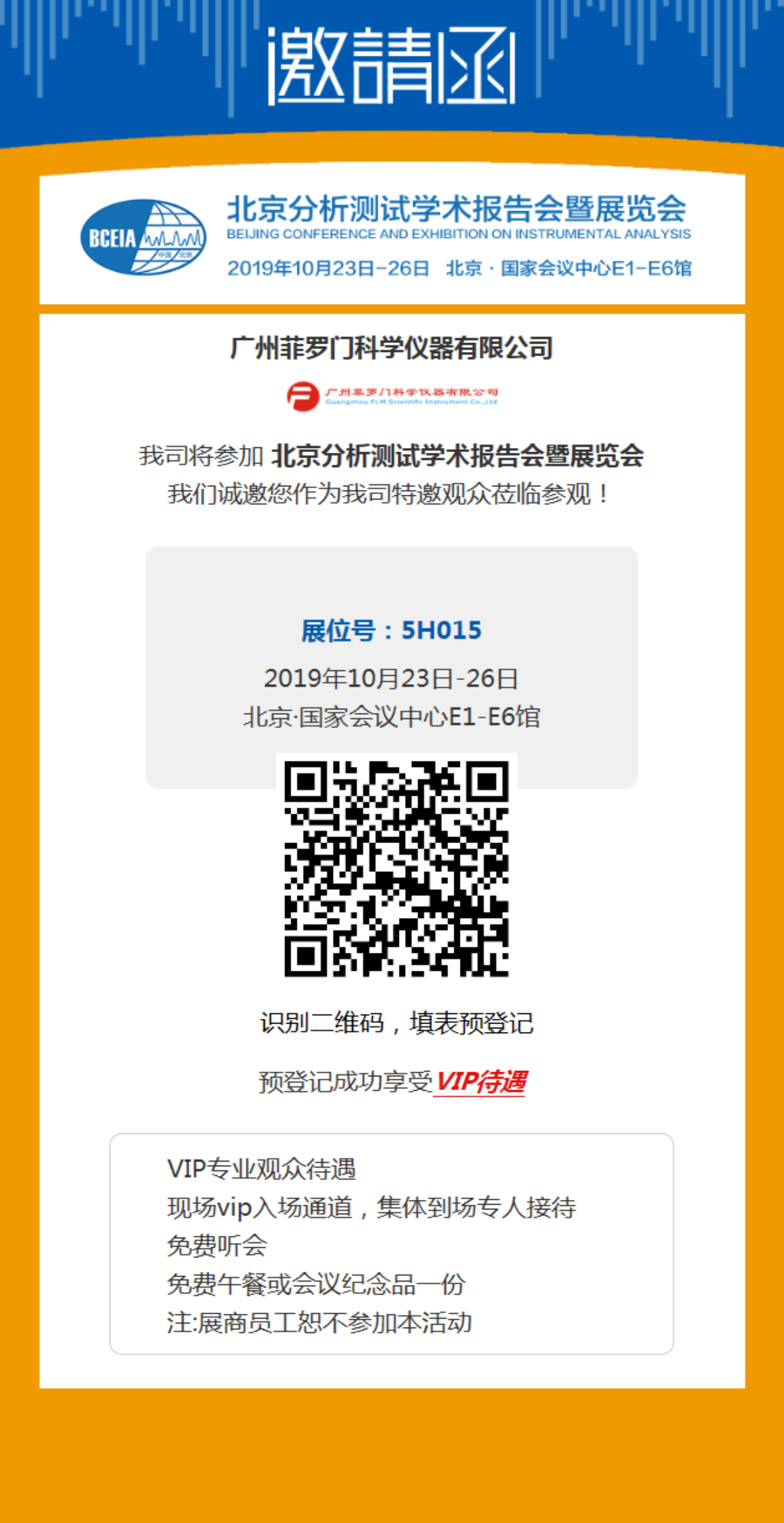廣州菲羅門科學儀器有限公司將于10月23至26日參加第十八屆北京分析測試學術報告會及展覽會。