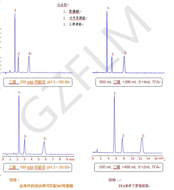 【菲羅門Comix色譜柱】苯磺酸、對(duì)甲苯磺酸和2-萘磺酸的高效液相色譜分離