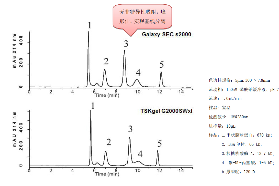 Galaxy SEC 對比TSKgel SEC 的分離效果: