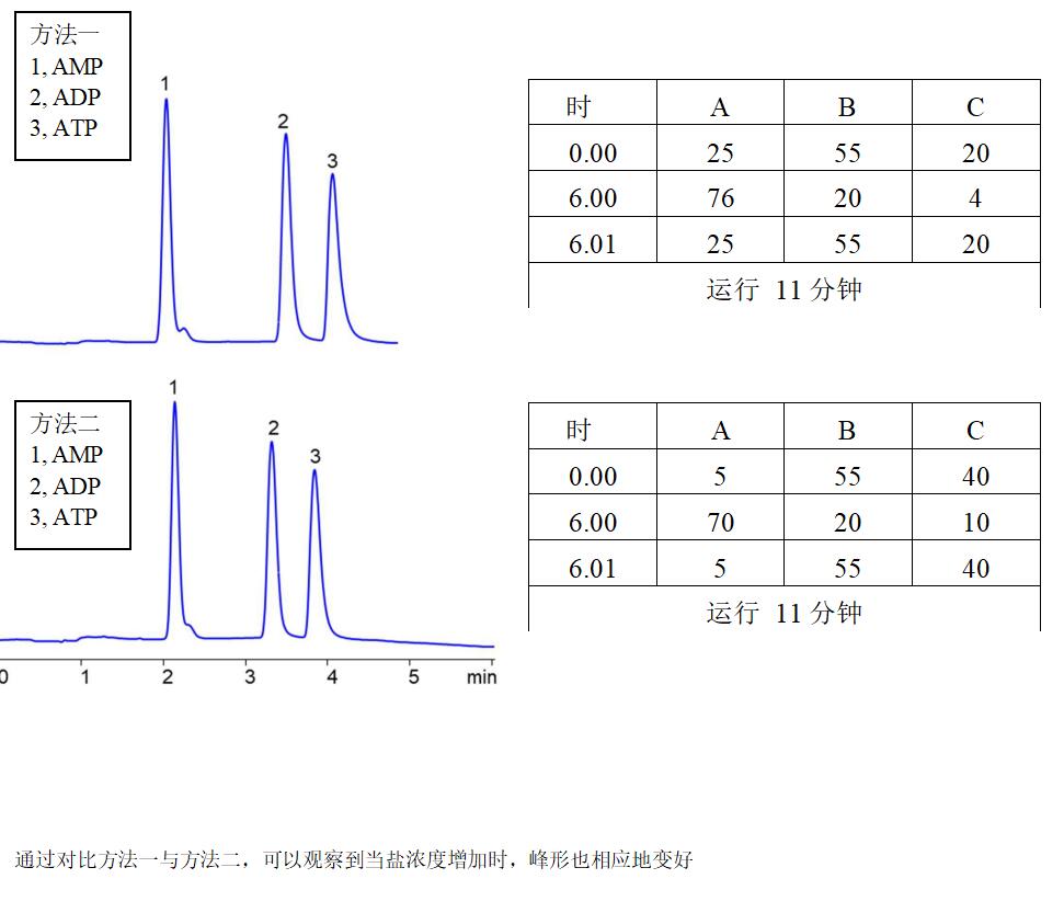 1. **色譜圖**: - 通過色譜圖可以直觀地看到AMP、ADP和ATP的分離情況。每個(gè)化合物在色譜圖上都有一個(gè)特定的保留時(shí)間,這是其身份識(shí)別的關(guān)鍵依據(jù)。