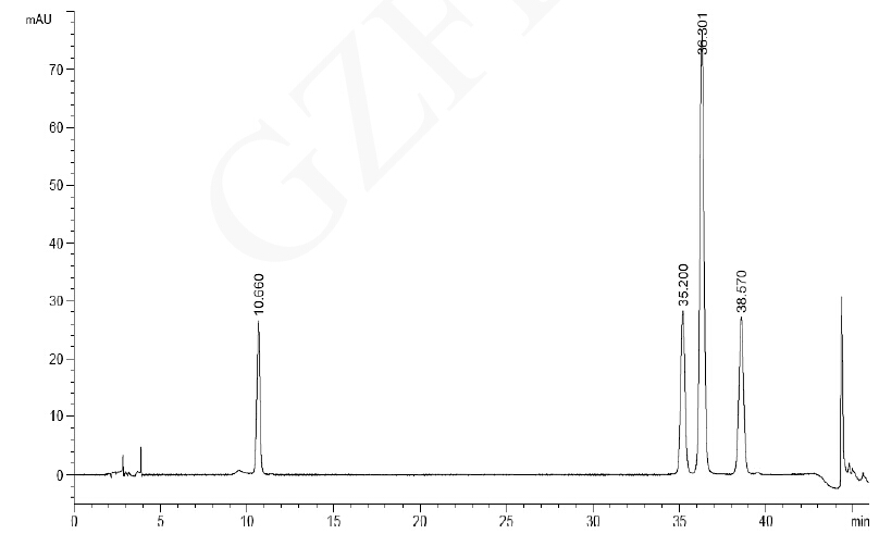 20-55min,250nm. 柱溫:45℃