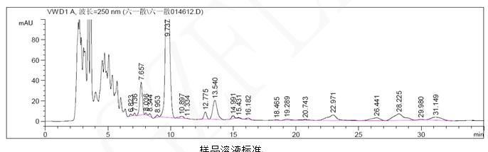 中國藥典規定理論塔板數按甘草酸銨應不低于3000,本試驗實際測出柱效為6143。