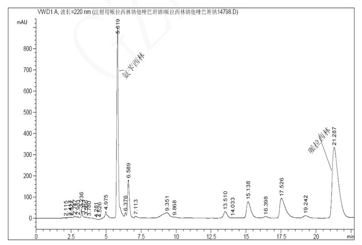 注射用哌拉西林鈉他唑巴坦鈉(4:1)有關物質檢驗方法
